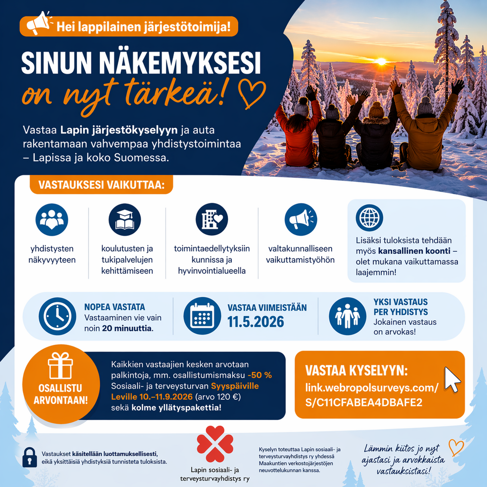 Sosiaali- ja terveysturvan Syyspäivät Lapissa kokoaa asiantuntijat, päättäjät ja järjestötoimijat yhteen Hullu Poroon 10.–11.9.2026. Kaksipäiväisen seminaarin kattoteemana on kokonaisturvallisuus…